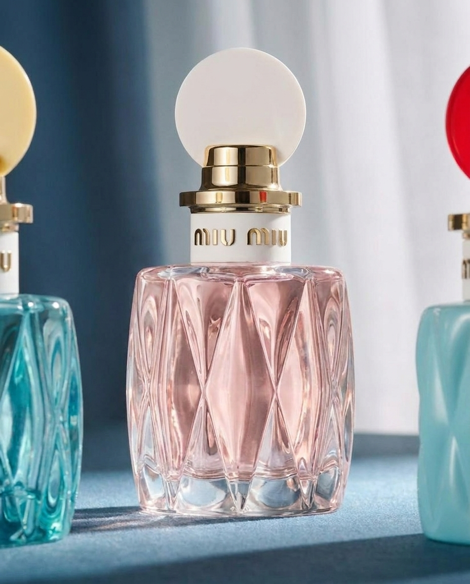 Net als bij de mode speelt design een grote rol bij de parfums van Miu Miu. De flacons zijn geïnspireerd op de iconische matelassé-leerstructuur uit de tassen van het merk. Het geribbelde glas, zachte pasteltinten en retro details maken de flessen echte eyecatchers.